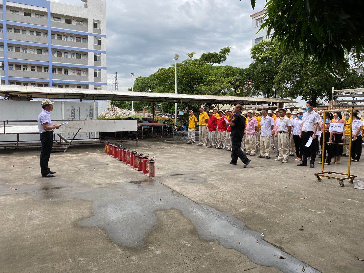 為掌握基本的防火、滅火、急救等消防常識,為進一步提升工廠消防管理水平,增強職員的消防安全意識和自防自救能力。雅日玻璃鋼公司每年定期的消防演練于2020年7月1日下午4點再次進行,在安全主任姚令惠的組織下,現場對各部門的新老職員進行消防知識的培訓及實戰演練。