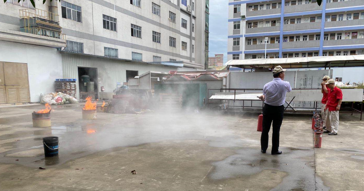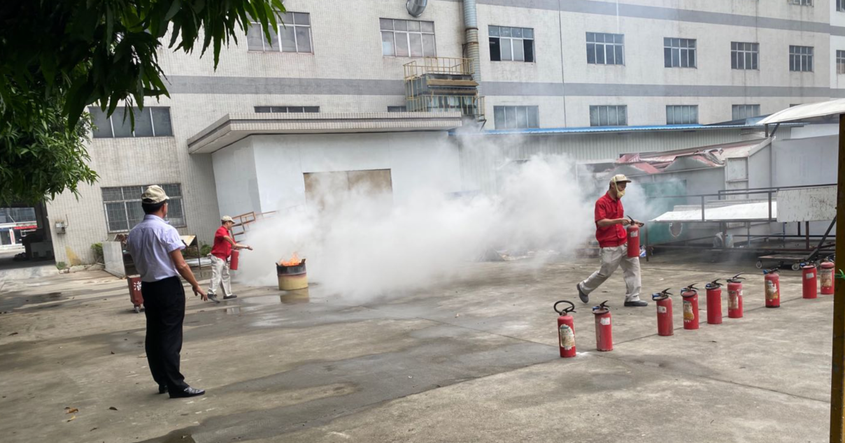 安全主任姚令惠向大家講解如何使用滅火器消除火災隱患,詳細介紹了滅火器材的操作要領,并現場對滅火器的使用方法進行了示范操作。參與演練的各部門班長主動帶領老員工和新來人員按照滅火器的使用步驟,一次次將燃燒的火盆迅速撲滅。